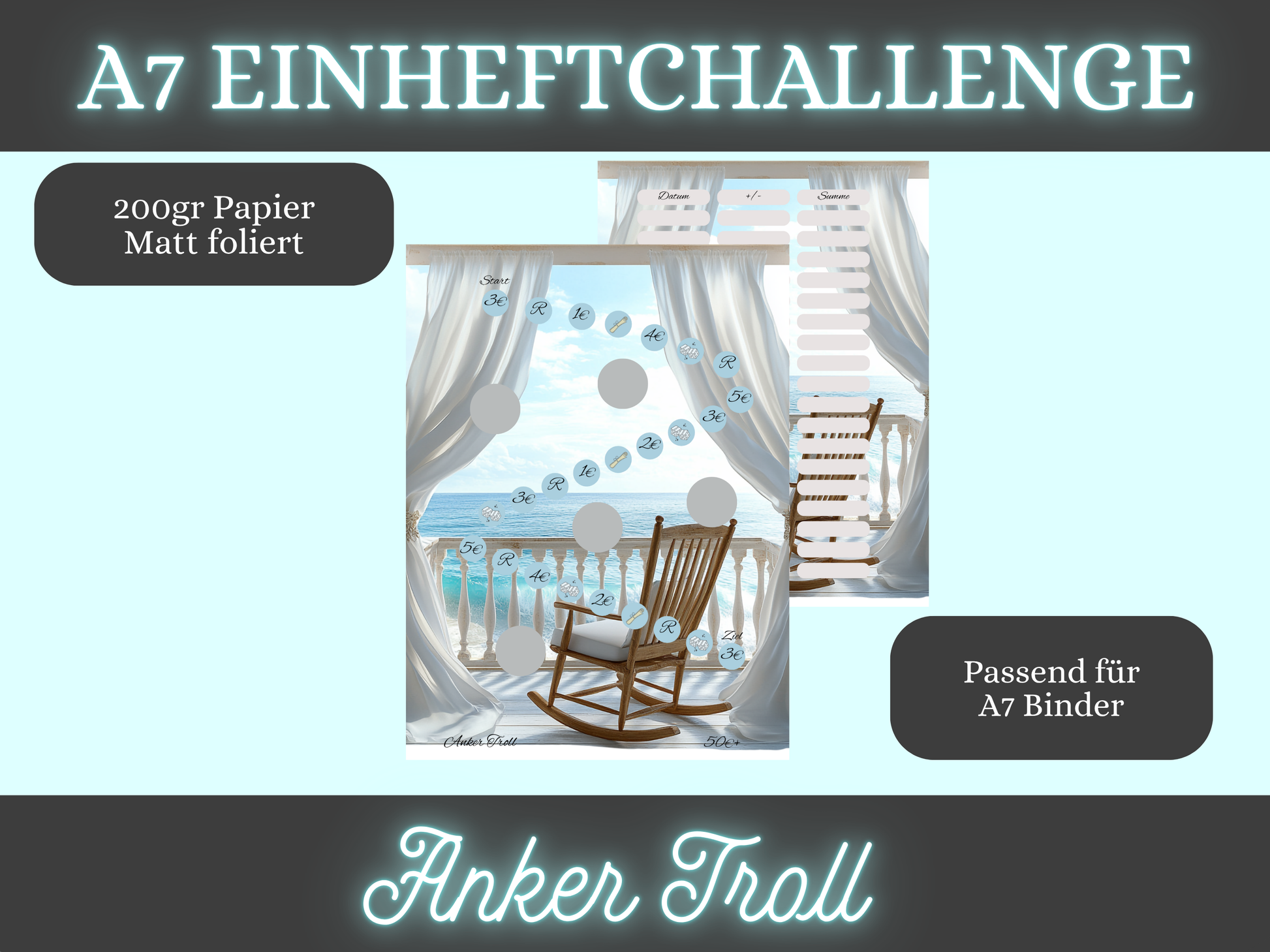 Das ist eine A7 Challenge zum einheften. Ein Sparweg zum würfeln, abstreichen, rubbeln und Lose ziehen.