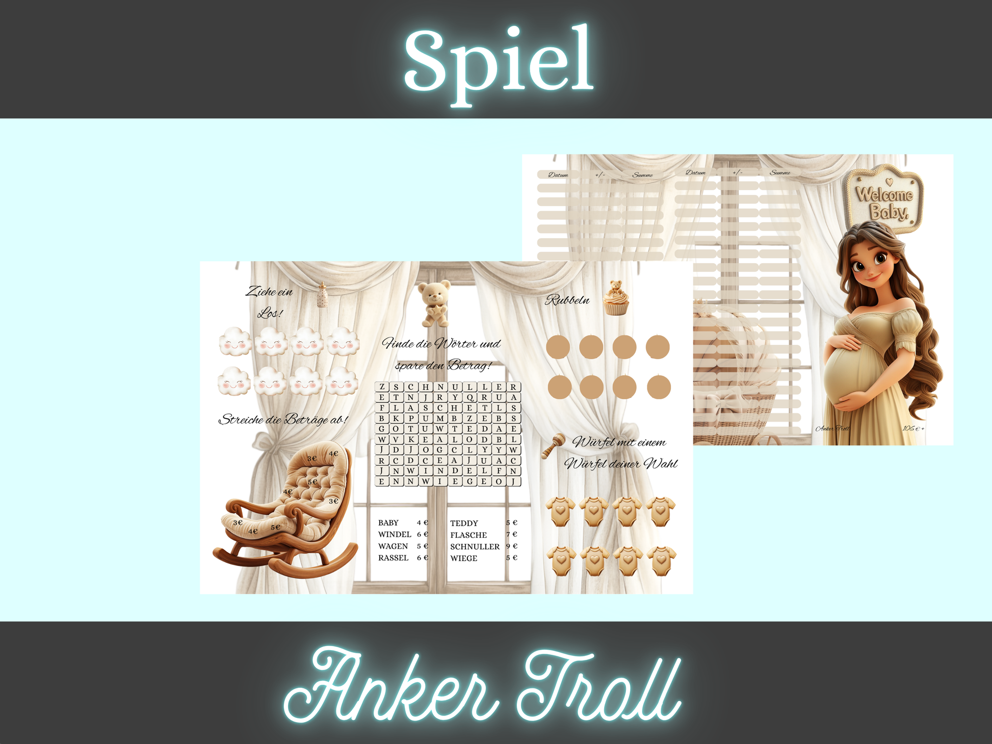 Aud der Einheftkarte befinden sich 40 Rubbelsticker unter denen sich verschiedene Bilder verstecken. Jedes Bild steht für eine bestimmte Aktion in der 3er Klappkarte.