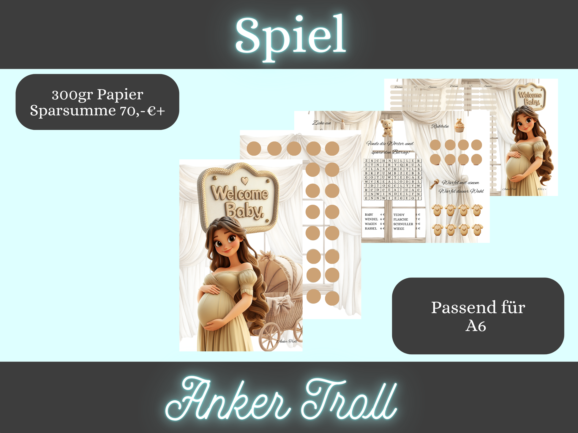 Welcome Baby besteht aus einer Karte zum Einheften und einer 3er Klappkarte.
